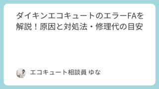 ダイキンエコキュートでエラーFAが出てお湯が沸かない方へ。原因は「高圧圧力異常」です。配管の汚れや冬場の凍結、部品故障が考えられます。エコキュート相談員のゆなが、エコテック等の専門データを基にリセット方法や修理費用の目安を分かりやすく解説します。