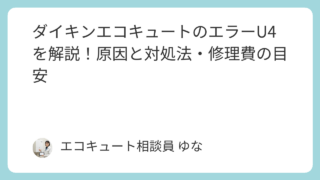 ダイキンエコキュートのU4エラーは室内外通信異常を示します。原因や電源リセット方法、修理費の目安(1.5万〜7万円)、放置リスクまで分かりやすく解説。修理か交換かの判断基準も紹介します。