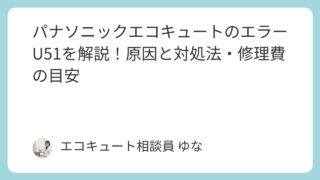 パナソニックエコキュートのエラーコード一覧をまとめて解説。F19・U22・H25・U51・H54の原因や対処法、修理費の目安まで分かりやすく紹介します。